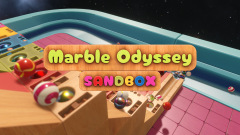 Marble Odyssey: Sandbox is a physics-driven sandbox experience where players build and observe intricate marble machines on a wooden table drifting through space.