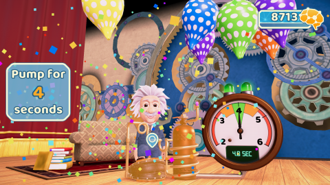 Using simple tap and hold mechanics, children count along to Einstein as they inflate different colored balloons, learning that pumping a balloon for too long will cause it to pop! Subsequently, not pumping a balloon long enough will send it flailing in the air!